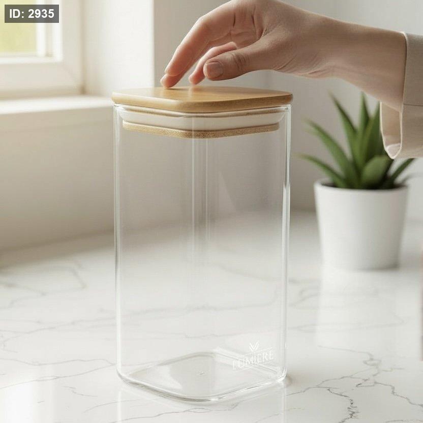 برطمان زجاجي مع غطاء محكمة الغلق، برطمانات الحلوى، حاويات تخزين المواد الغذائية مع أغطية من الخيزران، للشاي والقهوة والتوابل والحلوى والبسكويت