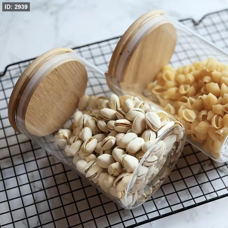 برطمان زجاجي مع غطاء محكمة الغلق، برطمانات الحلوى، حاويات تخزين المواد الغذائية مع أغطية من الخيزران، للشاي والقهوة والتوابل والحلوى والبسكويت