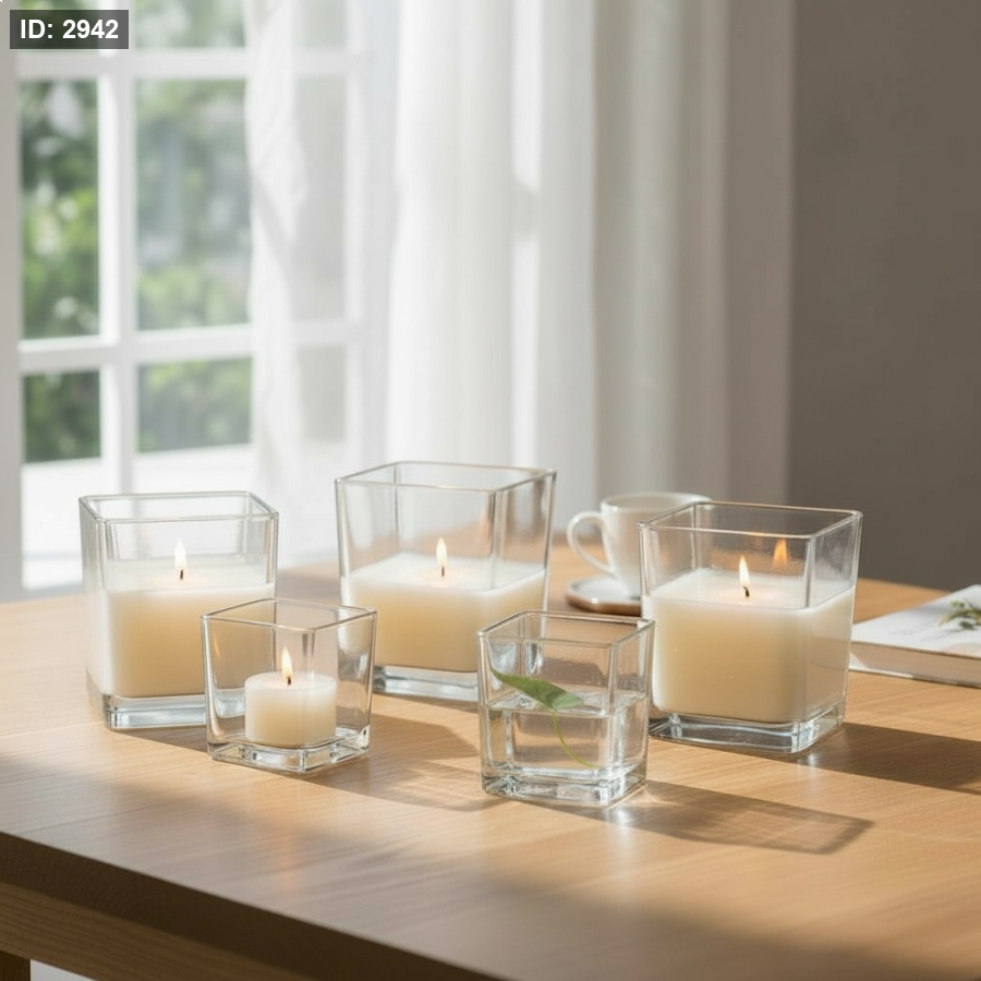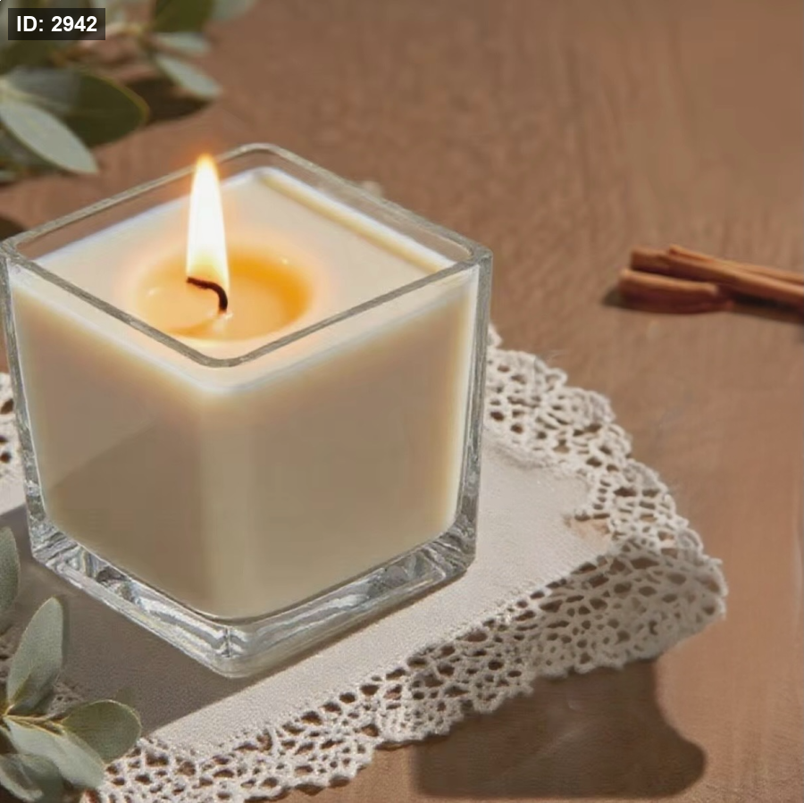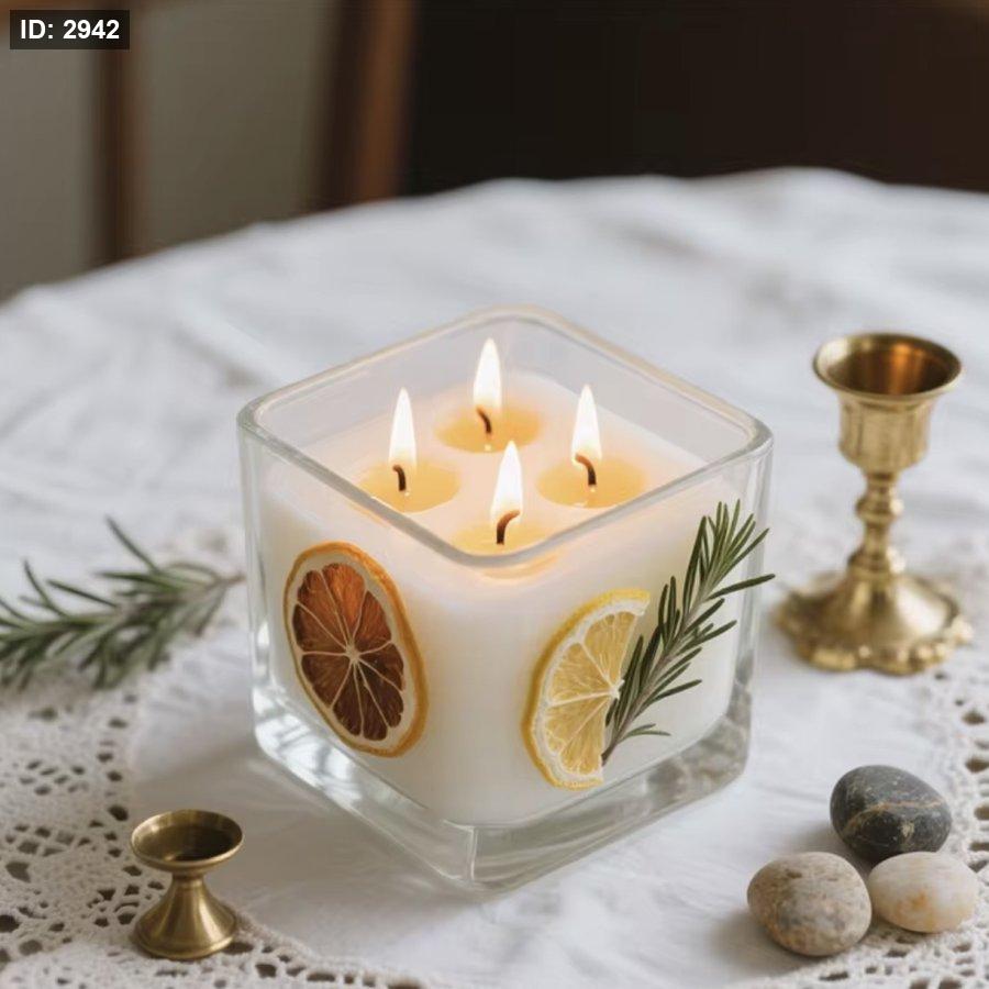 زجاج سميك وشفاف يظهر جمال الشمعة وتزييناتها، مثالي للشموع العطرية والهدايا الراقية.