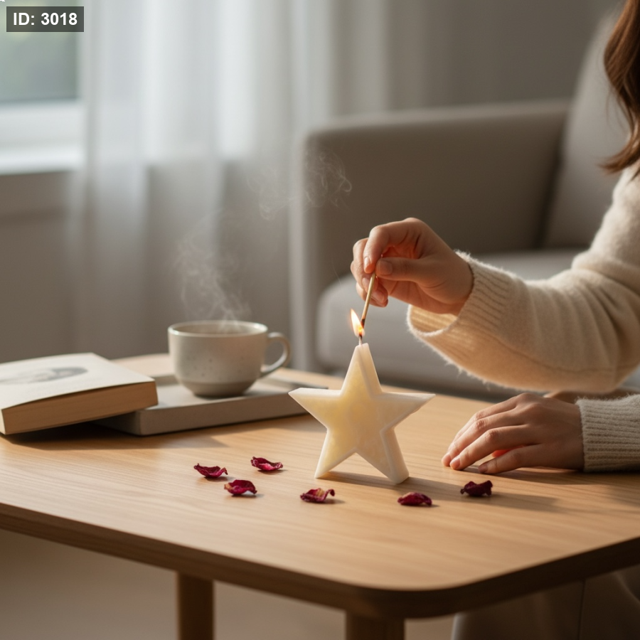 قالب النجمة المتوازن. يتميز هذا القالب بتصميمه العصري ذو الزوايا الحادة والجوانب المصقولة، مما ينتج شمعة أو قطعة ديكور تتناسب مع الأجواء الرمضانية