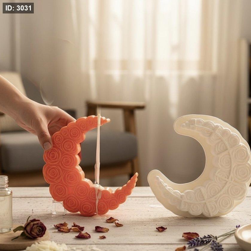 هذا القالب ليس مجرد شكل هندسي، بل هو لوحة فنية تجمع بين رمزية الهلال وجمال زهور الروز المتفتحة
